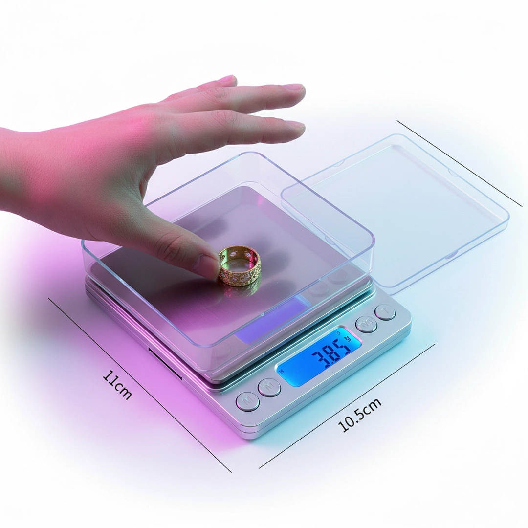 این ترازوی مینی پرتابل با دقت یک صدم گرم (۰.۰۱) و حداکثر ظرفیت ۵۰۰ گرم، ابزاری ضروری برای وزنکشی دقیق است. ایده آل برای سنجش طلا، زعفران، جواهرات و مواد آزمایشگاهی. طراحی جیبی، قابلیت صفر کردن (Tare) و شمارش قطعات (PCS)، آن را به یک ابزار دقیق و کاربردی تبدیل کرده است.