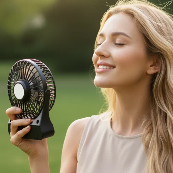 خنکی لحظه‌ای در دستان شما: پنکه شارژی دستی مشکی